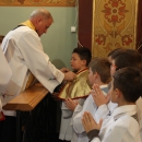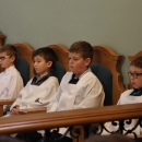 W uroczystość Jezusa Chrystusa Króla Wszechświata 20 listopada br. na Mszy świętej o godz. 11.00 miał miejsce uroczysty obrzęd przyjęcia nowych ministrantów. Do liturgicznej służby ołtarza zostało włączonych 30. chłopców. Przyjęcia dokonał ks. Proboszcz Bogusław Kamiński, a odpowiedzialnym za przygotowanie kandydatów był wikariusz ks. Krzysztof Józefczyk. Cieszymy się i gratulujemy nowym ministrantom oraz ich rodzicom i życzymy pięknej, gorliwej posługi przy ołtarzu Jezusa przez długie lata.